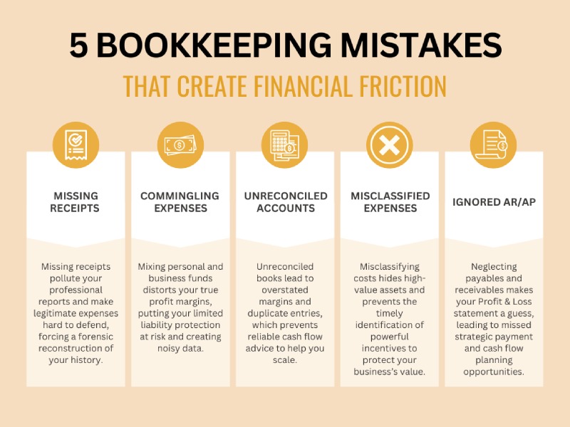 If this year’s tax filing left you feeling drained, it’s often because these common bookkeeping mistakes have been creating friction in your system all year long.